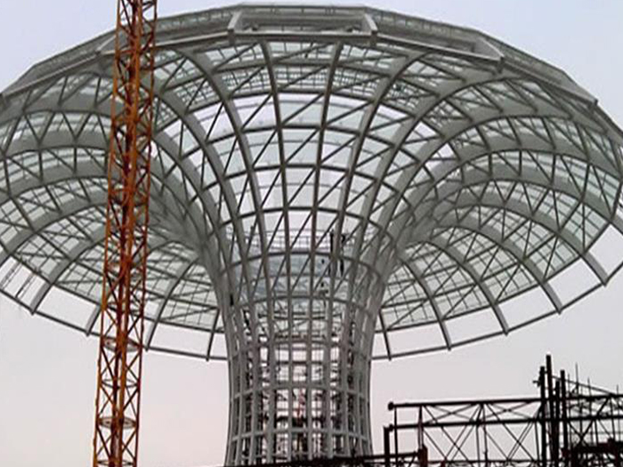 二、球形网架结构因其结构新颖,受力合理,自重轻、用钢量低等优点。如大型体育场馆球形常德螺栓球网架、公共场馆球形网架、电厂常德螺栓球网架、水泥工业球形网架、仓储物流球形网架、常德干煤棚工业球形网架、常德收费站常德加油站球形网架、展览中心、影剧院、商场、航站楼、候车厅、工厂常德车间、仓库、电视塔等球形螺栓球节点网架。国内球形网架结构主要分为:常德焊接球节点网架及螺栓球节点网架两种。螺栓球节点网架其构件工厂内加工量较大,现场安装便捷,适用于现场工期紧,常德施工条件、用电量受制约,网架形状复杂、常德杆件定位困难的异形结构。螺栓球节点球形网架系统基本由常德杆件、螺栓球、支撑支座等组成。按照节点形式可分为交叉常德桁架体系、四角锥体系、三角锥体系等。支撑方式多为固定支座支撑。对于大面积、大跨度及有特殊受力或伸缩要求的网架结构可采用橡胶支座、滑移支座、球铰支座等支撑形式,以满足结构自身的受力稳定、均衡,便于内力释放等设计要求。